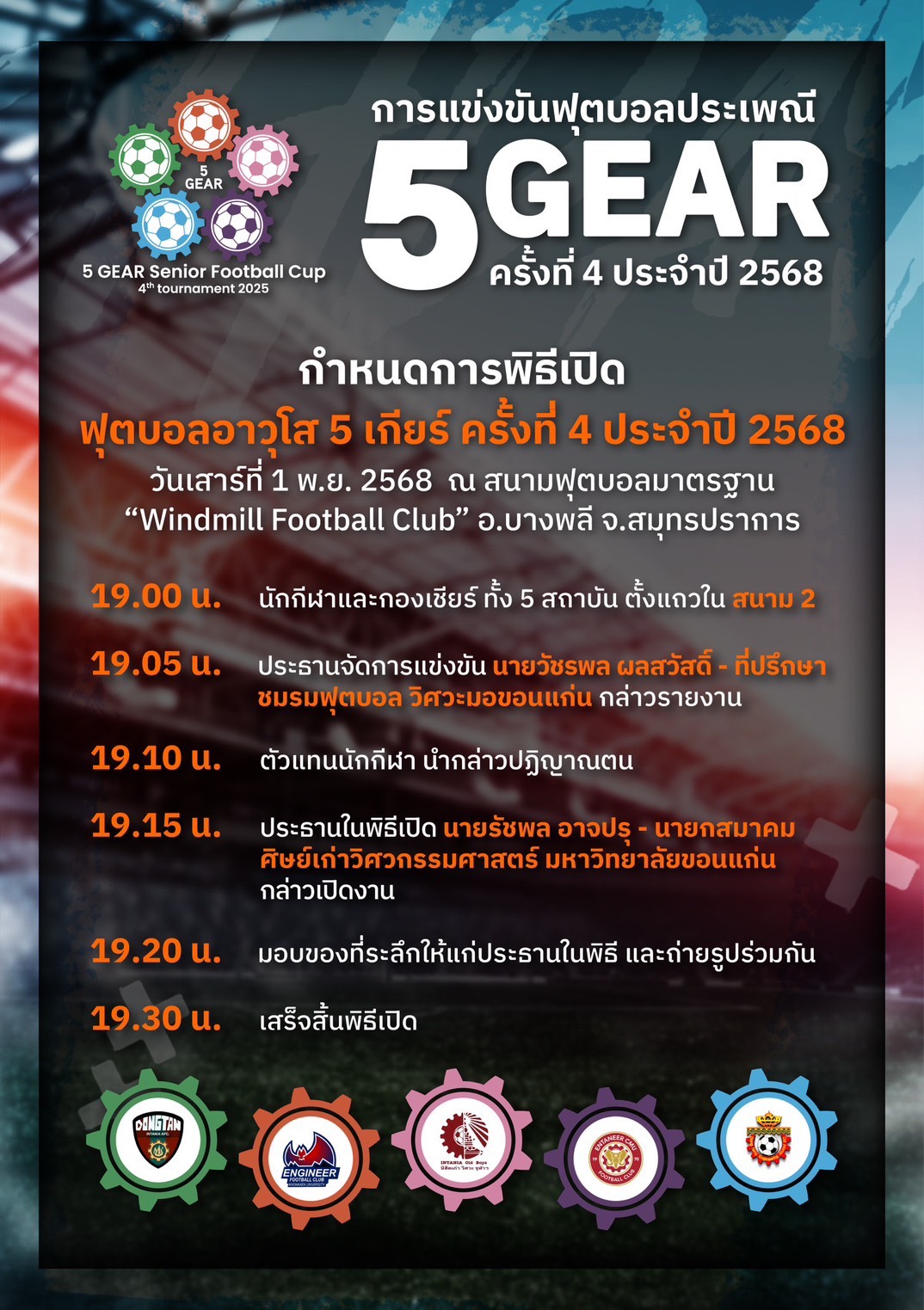 วันเสาร์ มีพิธีเปิดกับแข่งฟุตบอล 5เกียร์