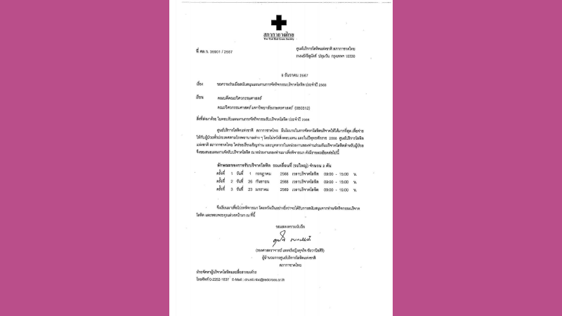 เรียนร่วมงานบริจาคโลหิต ครั้งที่ 1 ประจำปี 2569