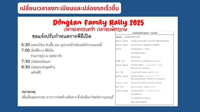 Dongtan Family Rally 2025 ขอแจ้งปรับกำหนดการพิธีเปิด