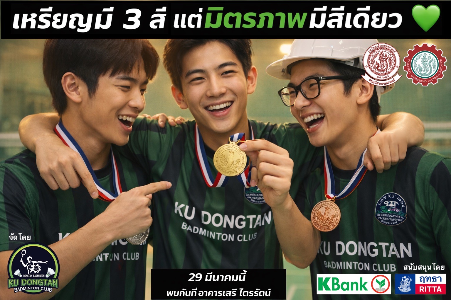 อาทิตย์ที่ 29 มีนาคมนี้ ณ สนามแบดมินต้น อาคารเสรี ไตรรัตน์ มหาวิทยาลัยเกษตรคาสตร์ บางเขน